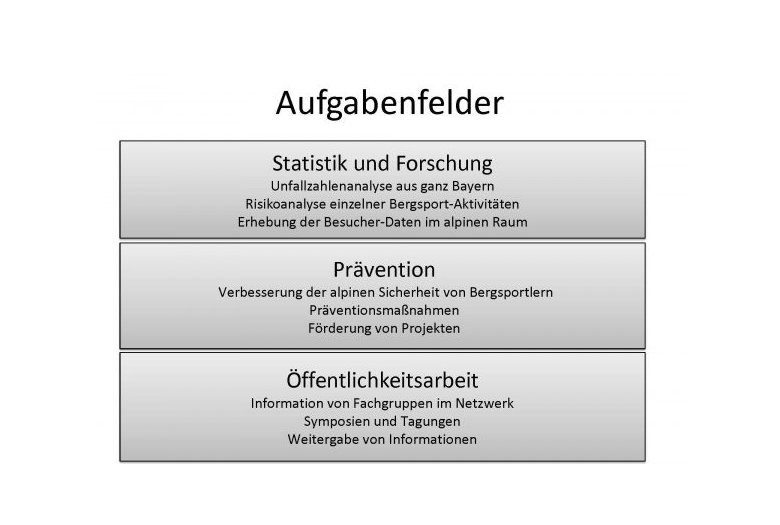 In Kooperation mit Fachverbänden, Ministerien und weiteren Expertinnen und Experten soll ein bayernweites Netzwerk für alpine Sicherheit entstehen sowie die wissenschaftliche Arbeit dazu unterstützt werden.